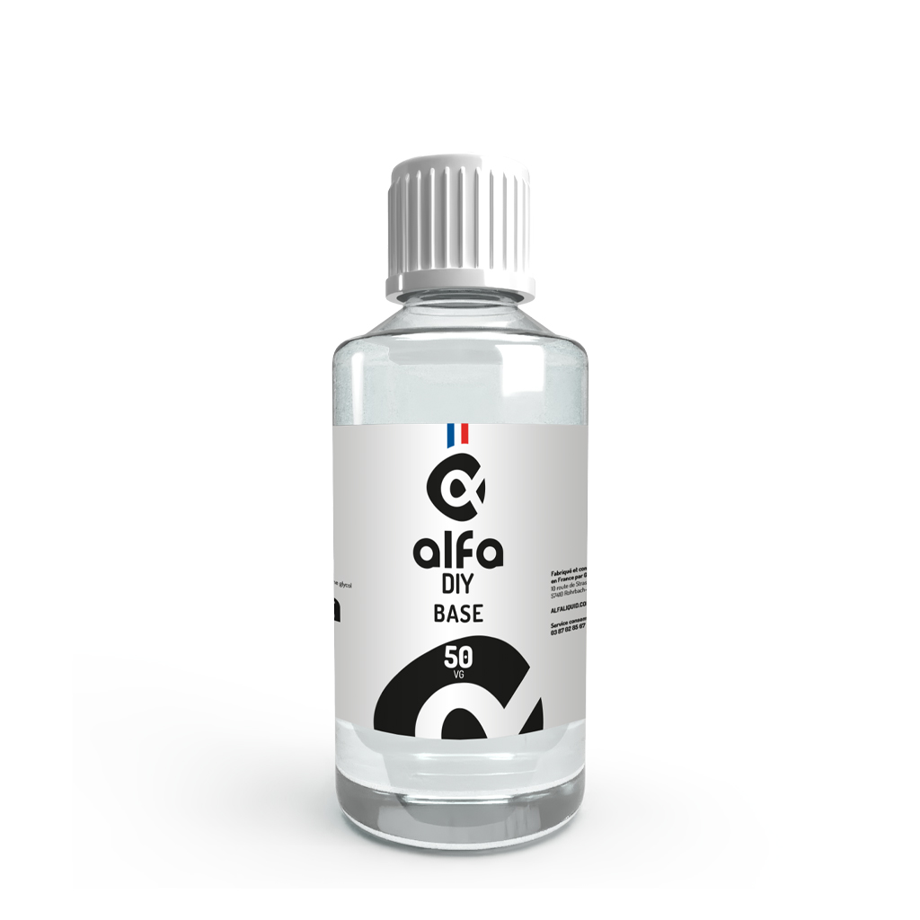 Alfa Base DIY 250 мл – 50PG/50VG е безникотинова база за приготвяне на собствена е-течност. Съотношение 50PG (пропиленгликол) / 50VG (растителен глицерин), произведена във Франция. Предлага се в разфасовка от 250 мл.