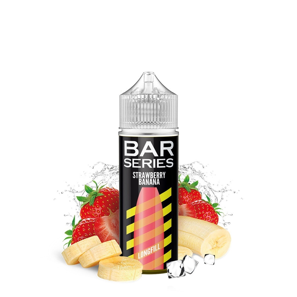 Bar Series Strawberry Banana е Longfill е-течност със сочен вкус на ягода и банан, комбинирани с охлаждащ ефект. Longfill съдържа 20 мл аромат в бутилка от 120 мл.