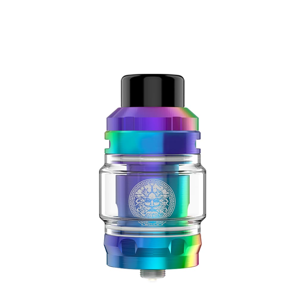 GeekVape Tank Zeus Z е резервоар за Coilheads/Намотки с диаметър 26 mm и капацитет 5 ml. Който използва разнообразие от взаимозаменяеми GeekVape Z Coil Coilheads/Намотки. Благодарение на горния въздушен поток и обновената система за пълнене на резервоара, устройството няма да ви създаде проблеми с изтичане на е-течност. Предлага се в черно, синьо, златно, неръждаема стомана, rainbow и gunmetal.