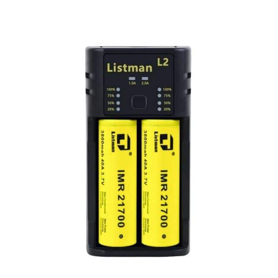 Listman Charger L2 е универсално смарт USB зарядно с интелигентно зареждане на две батерии едновременно. Позволява зареждането на различни размери Li-ion/IMR, Ni-MH и Ni-Cd комплекти цилиндрични батерии до височина 70 mm и ширина 32 mm. Той автоматично открива и зарежда батерията и открива мощността на батерията и определя подходящия метод на захранване за нея. Зарядното разполага и с LED индикатор и редица защити като защита от презареждане, защита от неправилно поставена батерия и защита от нагряване.