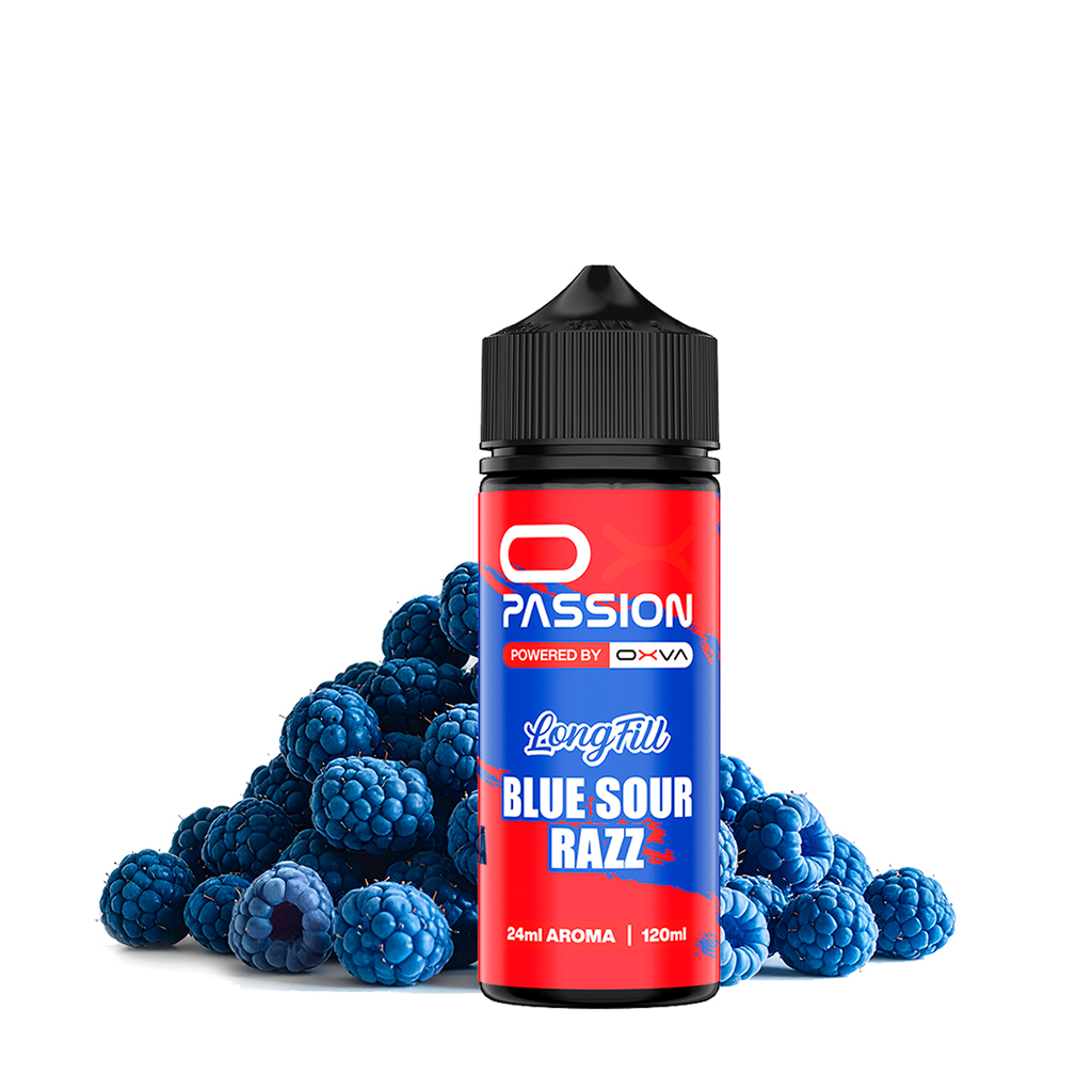 Oxva OX Passion Blue Sour Razz е Longfill е-течност с вкус на боровинка, комбиниран с кисела синя малина. Longfill съдържа 24 мл аромат в бутилка от 120 мл.