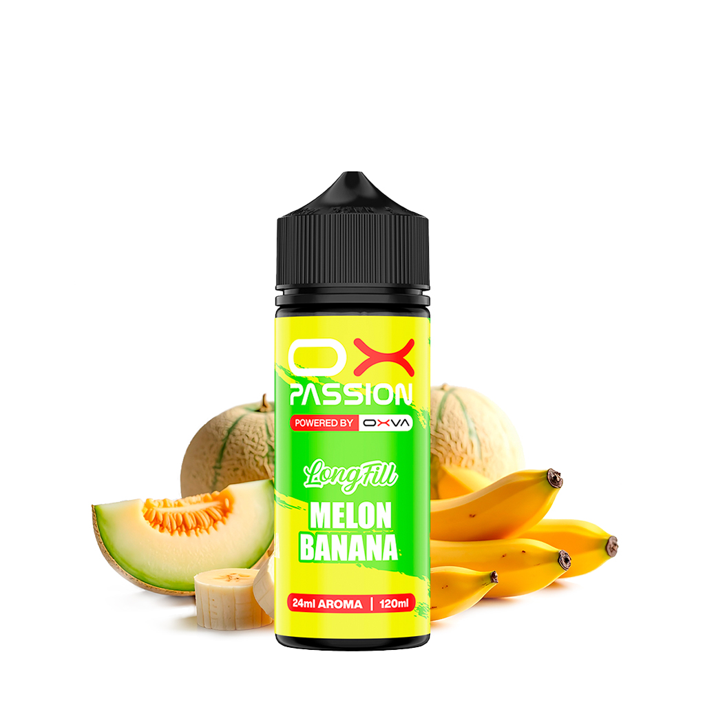 Oxva OX Passion Melon Banana е Longfill е-течност с вкус на пъпеш, комбиниран с банан. Longfill съдържа 24 мл аромат в бутилка от 120 мл.