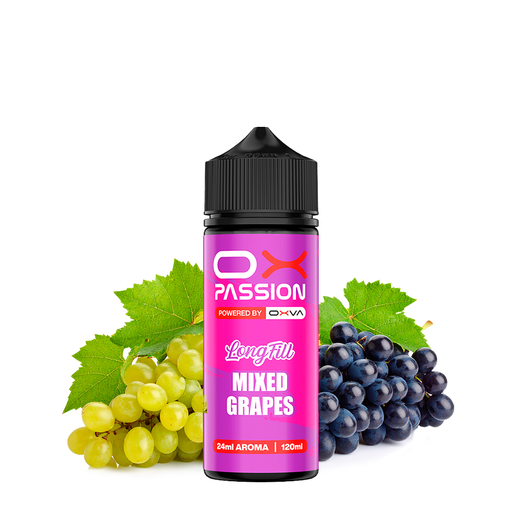 Oxva OX Passion Mixed Grape е Longfill е-течност с вкус на червено и бяло грозде. Longfill съдържа 24 мл аромат в бутилка от 120 мл.
