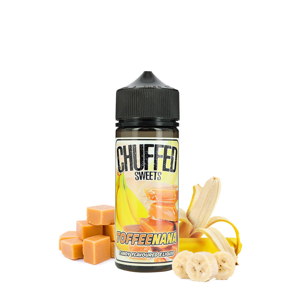 Chuffed sind 100ml Shortfill E-Liquids aus Großbritannien. Chuffed Sweets Toffeenana ist ein 100ml Shortfill E-Liquid mit Bananengeschmack kombiniert mit Toffee-Karamell.