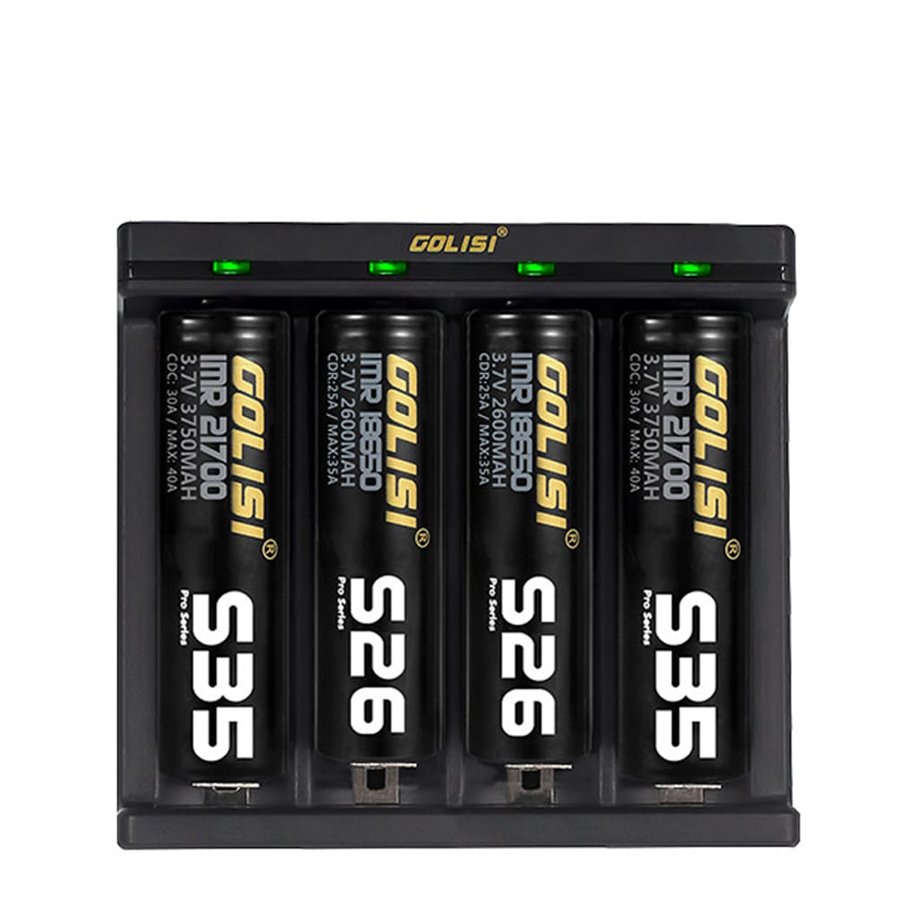 Golisi Ladegerät Needle 2 ist ein universelles USB Ladegerät, das vier Akkus gleichzeitig auflädt. Es ermöglicht das Laden verschiedener Größen von zylindrischen Li-Ion/IMR-Batteriekartuschen bis zu einer Höhe von 70 mm und einer Breite von 32 mm. Es erkennt und lädt automatisch jede Batterie in vier Steckplätzen separat und erkennt die Leistungskapazität der Batterie und bestimmt den geeigneten Energiemodus. Das Ladegerät verfügt über viele Schutzfunktionen wie Schutz vor Überladung, Schutz vor falsch eingesetzter Batterie und Schutz vor Überhitzung.
