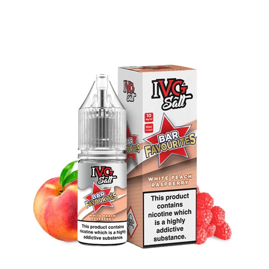 IVG SALT Bar Favourites White Peach Raspberry ist ein Nikotin E-Liquid mit dem Geschmack von weißem Pfirsich in Kombination mit Himbeeren.