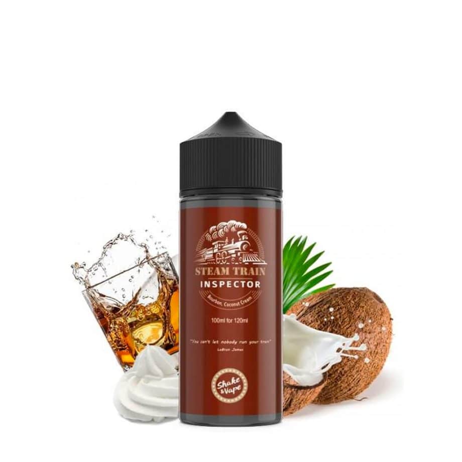 Steam Train Inspector ist ein Longfill E-Liquid mit dem Geschmack von Bourbon-Whisky kombiniert mit Kokoscreme. Longfill enthält 24ml Aroma in einer 120ml Flasche.