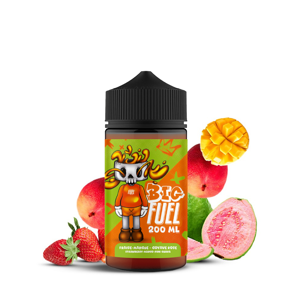 Maison Fuel BIG Guava Strawberry Mango je shortfill e-tekočina z okusom gvajave in jagode v kombinaciji z mangom. Na voljo je 200ml e-tekočine v 200ml steklenički.